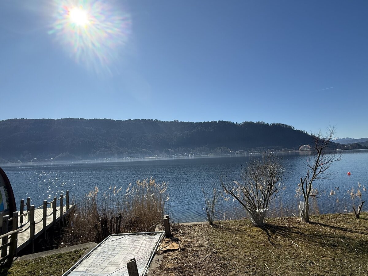 Die Wohnung bietet Seezugang zum Ossiacher See. Eine klassische Liegewiese ist nicht vorhanden, jedoch besteht die Möglichkeit, beispielsweise ein Paddelboard zu verstauen.